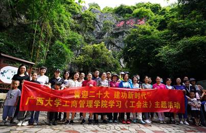 6月19日学院分工会组织会员到伊岭岩、花花大世界开展“喜迎二十大 建功新时代——《工会法》主题活动”。 通过发放学习资料、开展知识问答竞赛、案例分享等多种方式,有效推动教职工们对《工会法》学习浓厚兴趣。